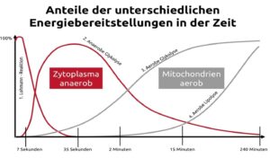 Dabei erfolgt die Energiebereitstellung der Stoffwechselsysteme nicht isoliert, sondern immer parallel. Je nach Belastungsdauer und -intensität verändert sich ihr relativer Beitrag der ATP-Resynthese.